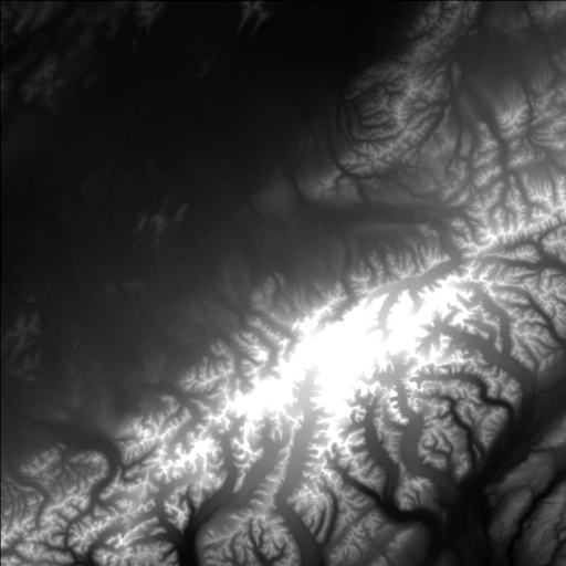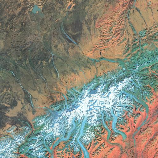 I scanned a 1-meter wide poster of a Landsat image of Denali National Park and the mountain formerly known as Mt. McKinley, North America's highest peak. Since I used to live in Alaska and one of the things I did at my job at the Alaska SAR Facility is to line up (co-register) satellite radar images and digital elevation models (DEMs, or height images), I felt I should put those skills to good use. This was also a class project in John Hart's CS 419 course in Scientific Visualization.